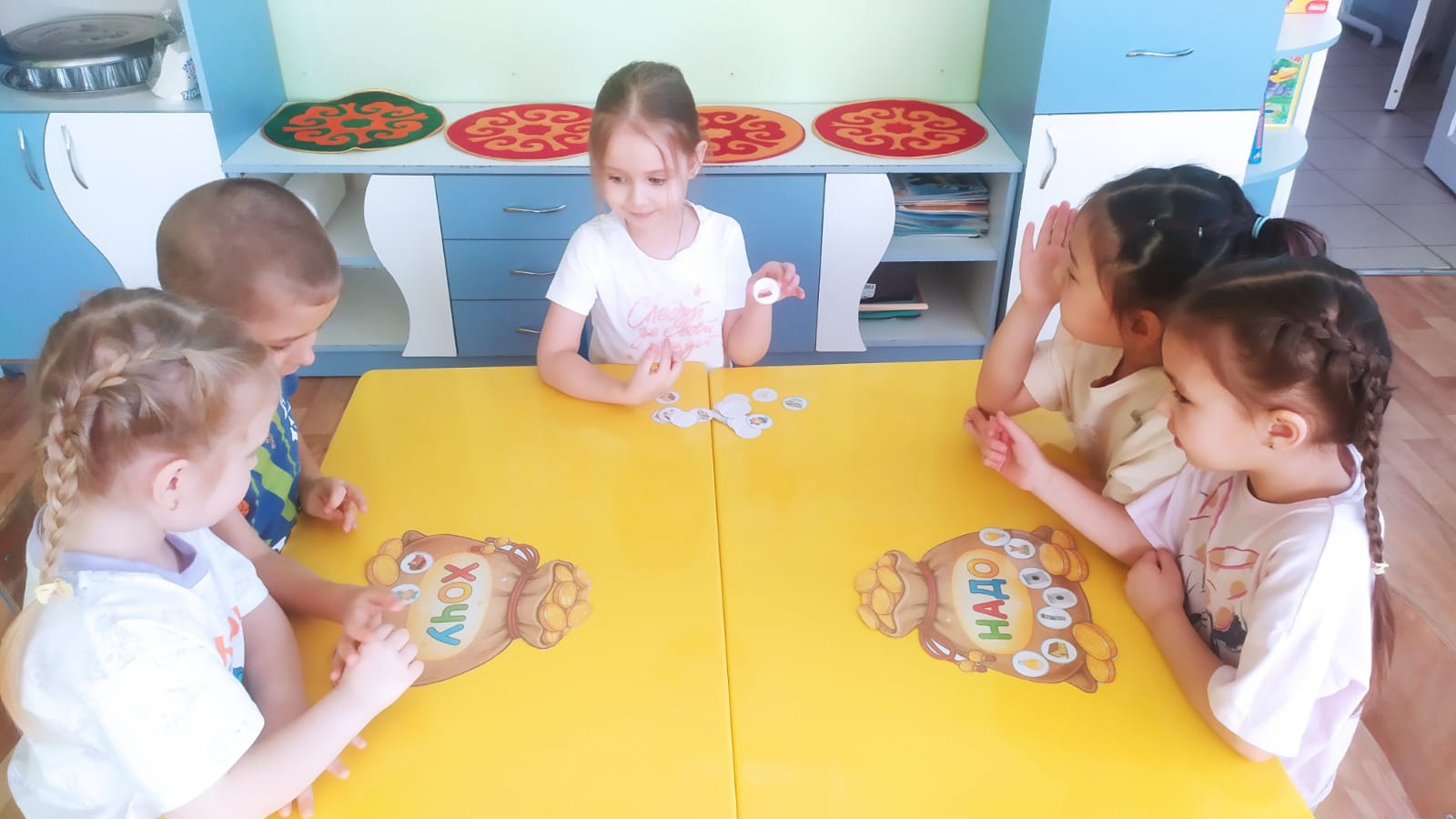 «Аралар» №5 мектепалды тобының балалары ойын барысында «қалаймын» және «қажет» арасындағы айырмашылықты меңгеріп алды, «табыс» және «шығыс» ұғымдарымен танысты, ақша-бұл шексіз ресур емес, ол еңбекпен келетіні, сатып алынған заттар ақшаға алынатынын, оларды ұқыпты ұстау туралы білім алды
